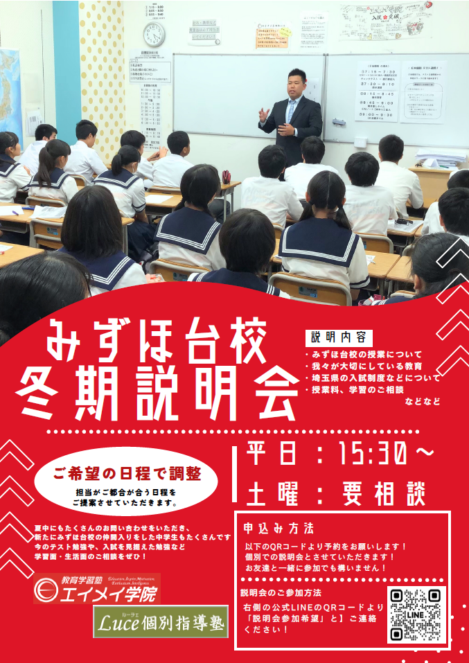 Luce ルーチェ個別指導塾 富士見市|三芳町|志木市|新座市|ふじみ野市|オシャレな空間での個別指導で成績が上がる。学習塾。中学受験|高校受験|大学受験 パンフレットはこちらから 冬期講習 説明会受付中! 詳しくはお問い合わせください 通塾生・卒業生にインタビューを行いました!(クリックで詳細が見られます)